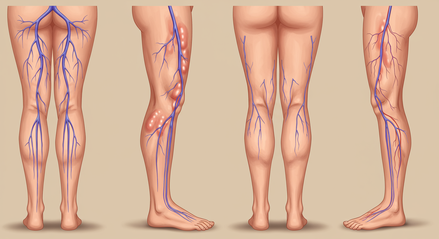 下肢静脈瘤には主に4つの種類があります。それぞれ症状が現れる箇所や見た目の特徴が異なります。